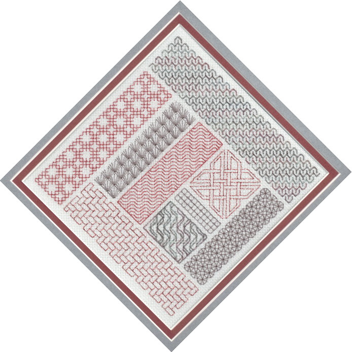 | Happiness, Longevity and Good Luck | Hardanger Hearts | Kaleidoscope | Blackwork Medley |